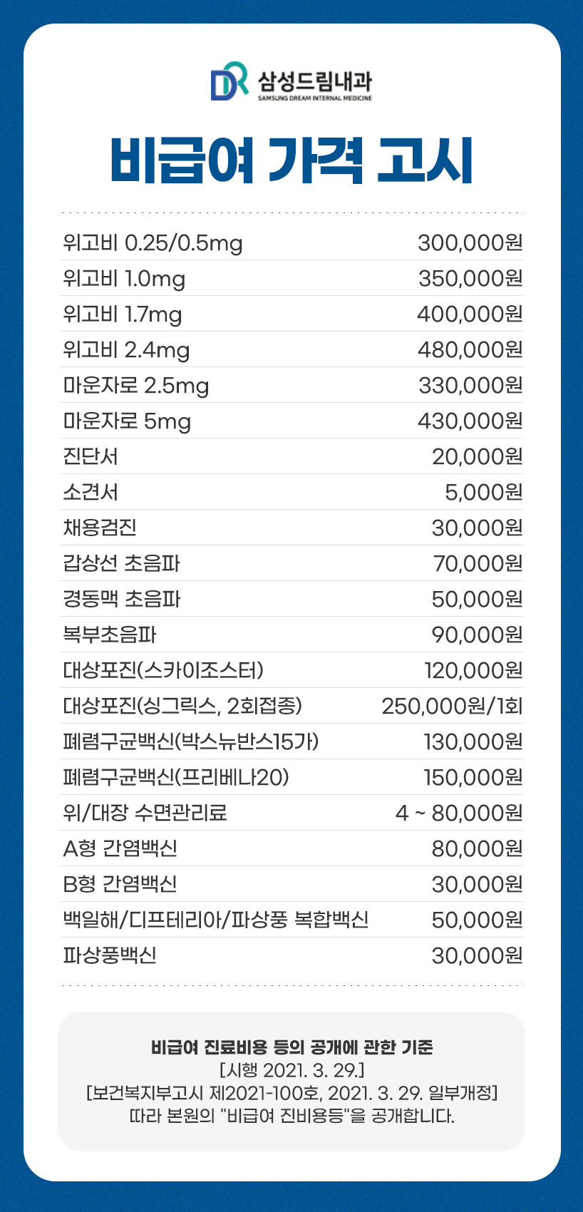 상호명 : 삼성드림내과 ㅣ 사업자등록번호 : 108-92-13968 ㅣ 대표자 : 박승식